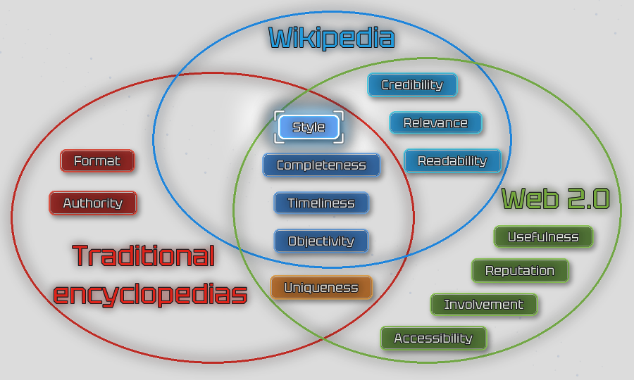 Style shows how the content of a Wikipedia article is organized. Wikipedia articles of high quality must follow the style guidelines, including appropriate structure. Therefore, one of the simplest and most popular measures for this dimension is the number of sections in the article. Such measures as the number of tables and the number of templates can also be used here.